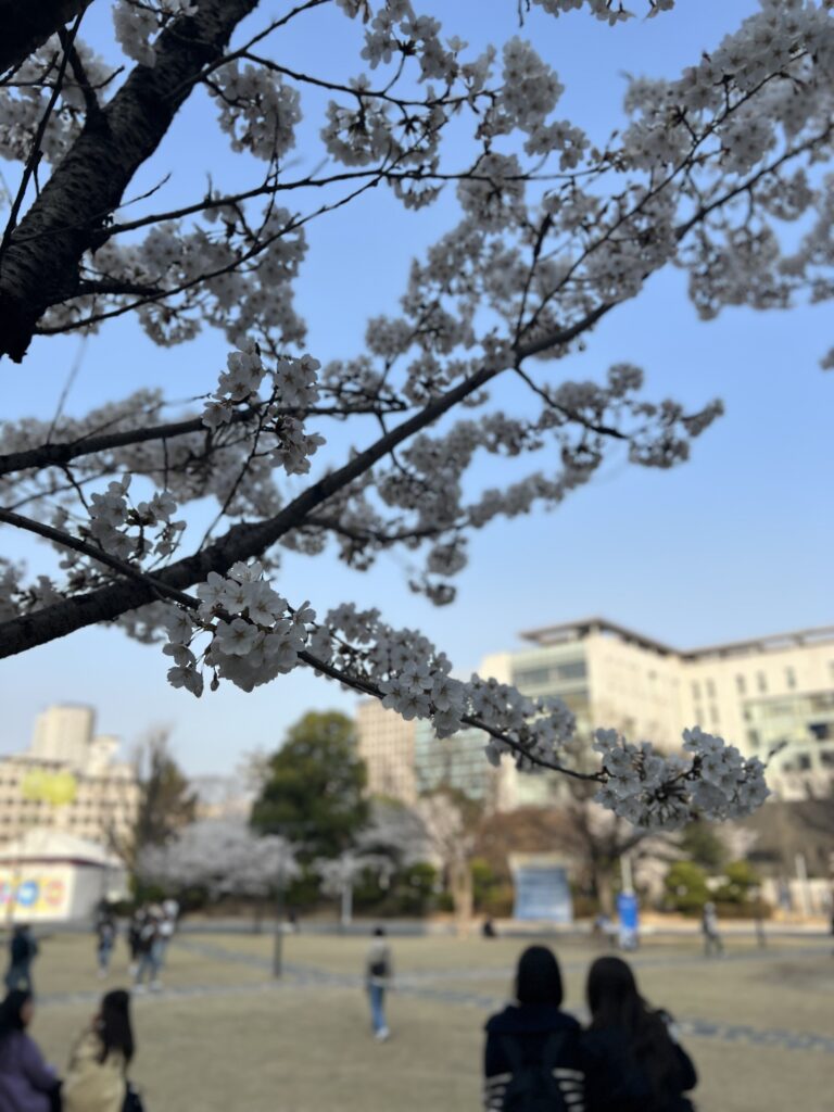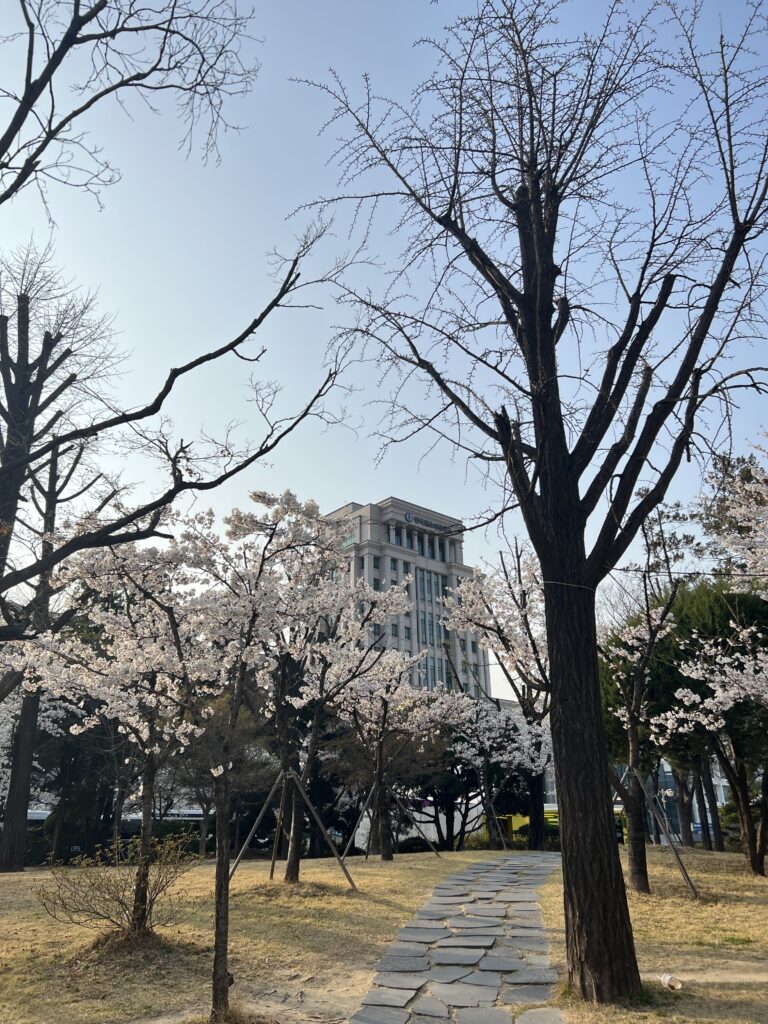 캠퍼스에도 벚꽃이 예쁘게 피어서 즐겁게 산책할 수 있었다.